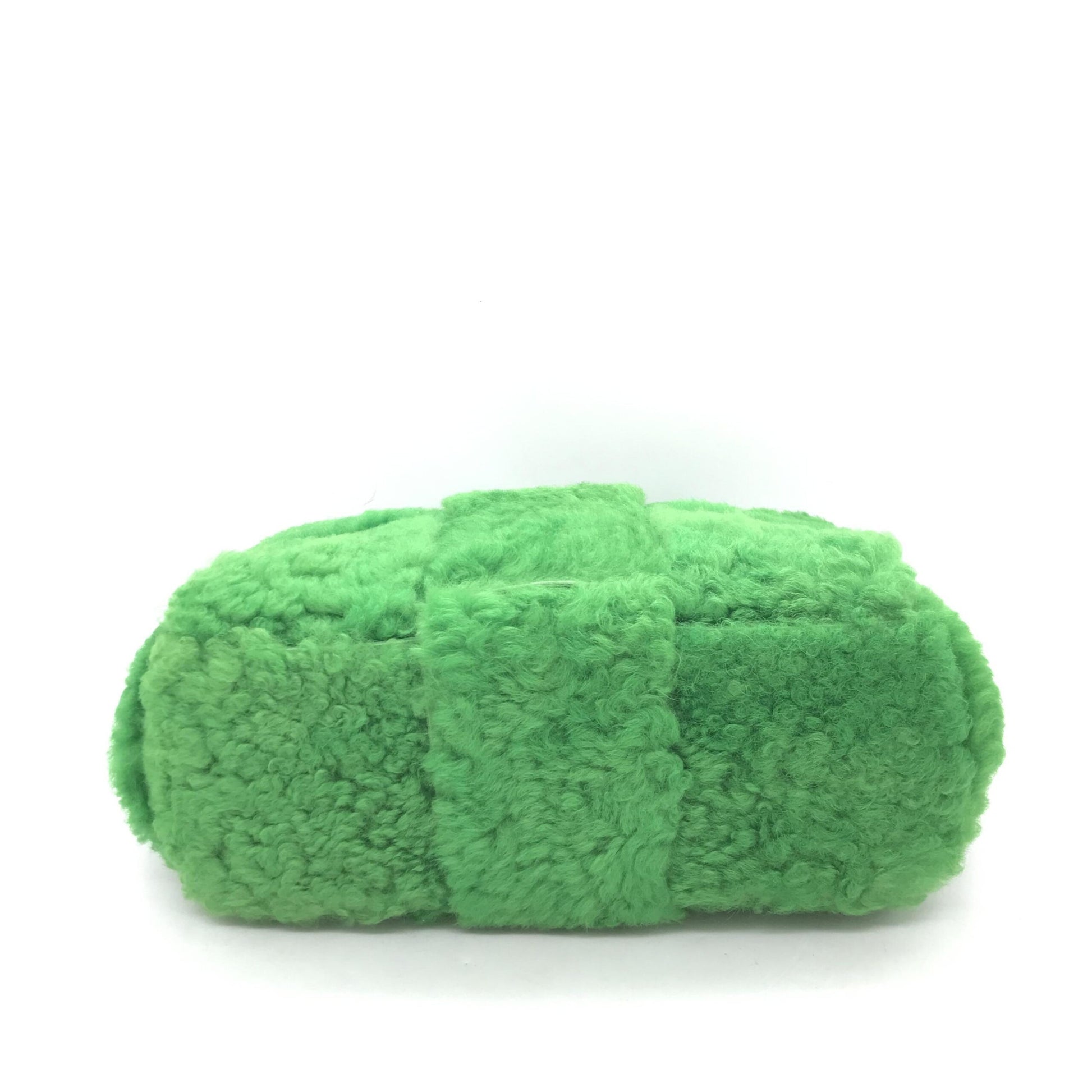 The exterior of the bag features the iconic Intrecciato weave, a signature of the brand, crafted from plush shearling in a captivating shade of green. This unique texture not only adds a touch of sophistication but also ensures durability and timeless appeal. While there is minor wear throughout, it only adds to the character of this elegant piece, making it a true collector’s item.